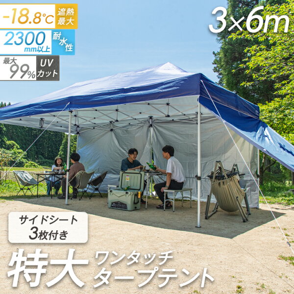 ※こちらは、3×6mタープテント(サイドシート3枚セット)の販売ページです。